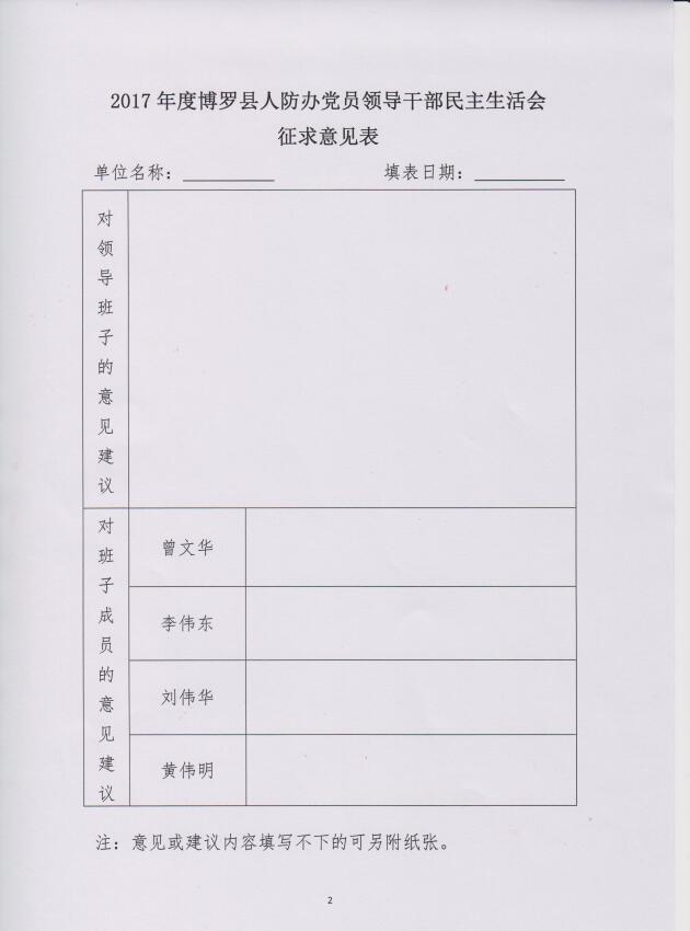 關(guān)于征求博羅縣人防辦領(lǐng)導(dǎo)班子2017年度民主生活會(huì)意見的函