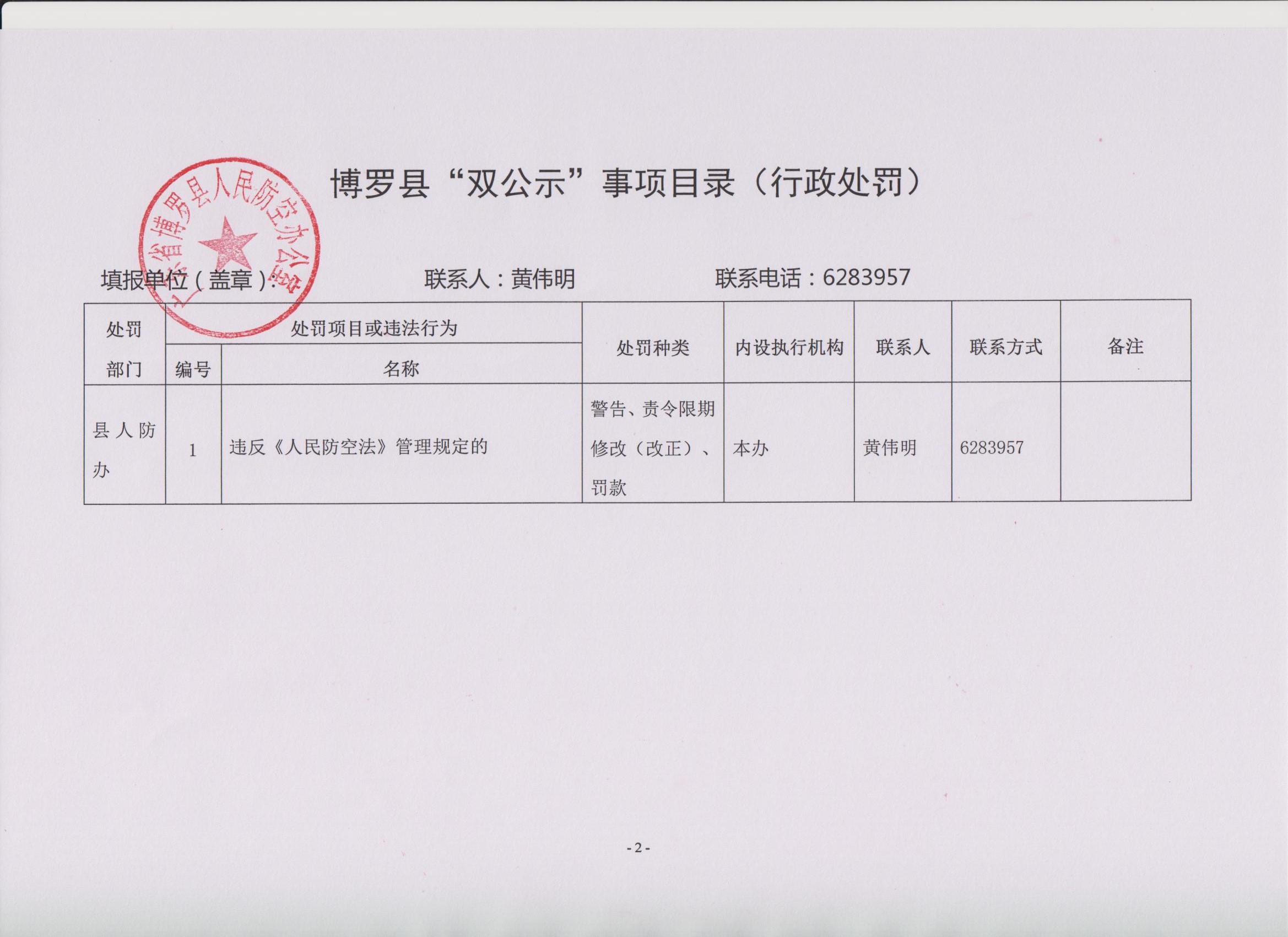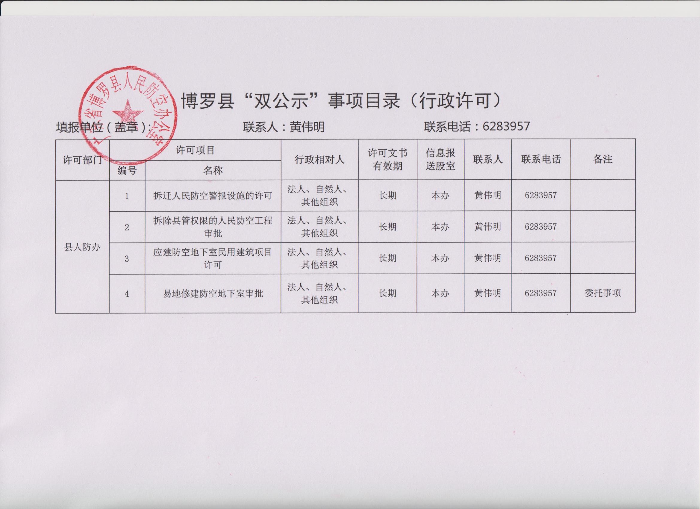 博羅縣人民防空辦公室“雙公示”事項目錄