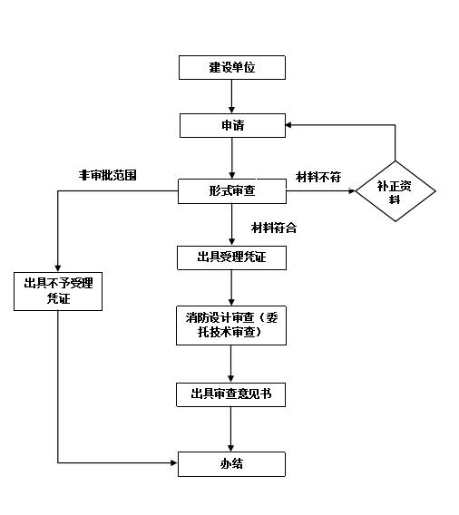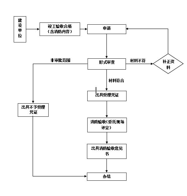 申請材料齊全,符合法定形式,予以受理;申請材料不齊全或者不符合法定形式,一次性告知申請人需要補正的全部內(nèi)容;申請的建設(shè)工程依法不需要申請消防驗收或不屬于本單位職權(quán)范圍的,不予受理。