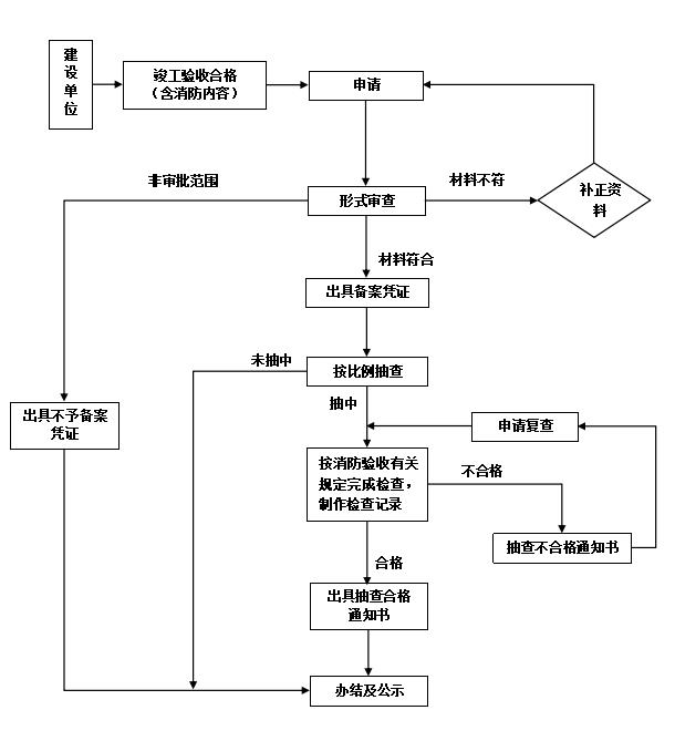 消防設(shè)計審查驗收主管部門應(yīng)當(dāng)對備案的其他建設(shè)工程進(jìn)行抽查。公眾聚集場所的建設(shè)工程的消防驗收備案抽查比例為80%,人員密集場所和設(shè)有人員密集場所的建設(shè)工程的抽查比例為50%,其他建設(shè)工程的抽查比例為10%。當(dāng)其他建設(shè)工程被確定為檢查對象,消防設(shè)計審查驗收主管部門按照建設(shè)工程消防驗收有關(guān)規(guī)定完成檢查,根據(jù)檢查結(jié)果發(fā)出《建設(shè)工程消防備案抽查結(jié)果通知書》;如檢查結(jié)果不合格,建設(shè)單位應(yīng)當(dāng)停止使用建設(shè)工程,并組織整改,整改完成后,向消防設(shè)計審查驗收主管部門提交《建設(shè)工程消防驗收備案抽查復(fù)查申請表》申請復(fù)查,復(fù)查結(jié)果合格后發(fā)出《建設(shè)工程消防備案復(fù)查結(jié)果通知書》。