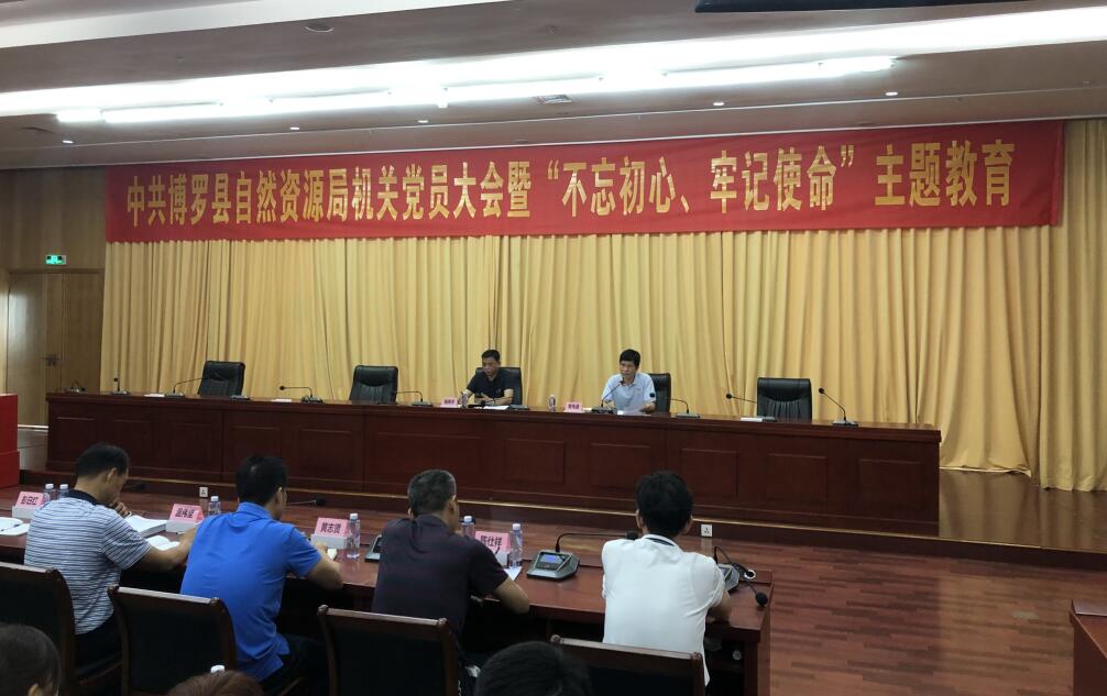 2019年8月14日上午,博羅縣自然資源局在縣文化中心多功能會議室召開中共博羅縣自然資源局機關黨員大會暨“不忘初心、牢記使命”主題教育,局黨組書記、局長楊偉平同志及局全體黨員參加了主題教育活動。