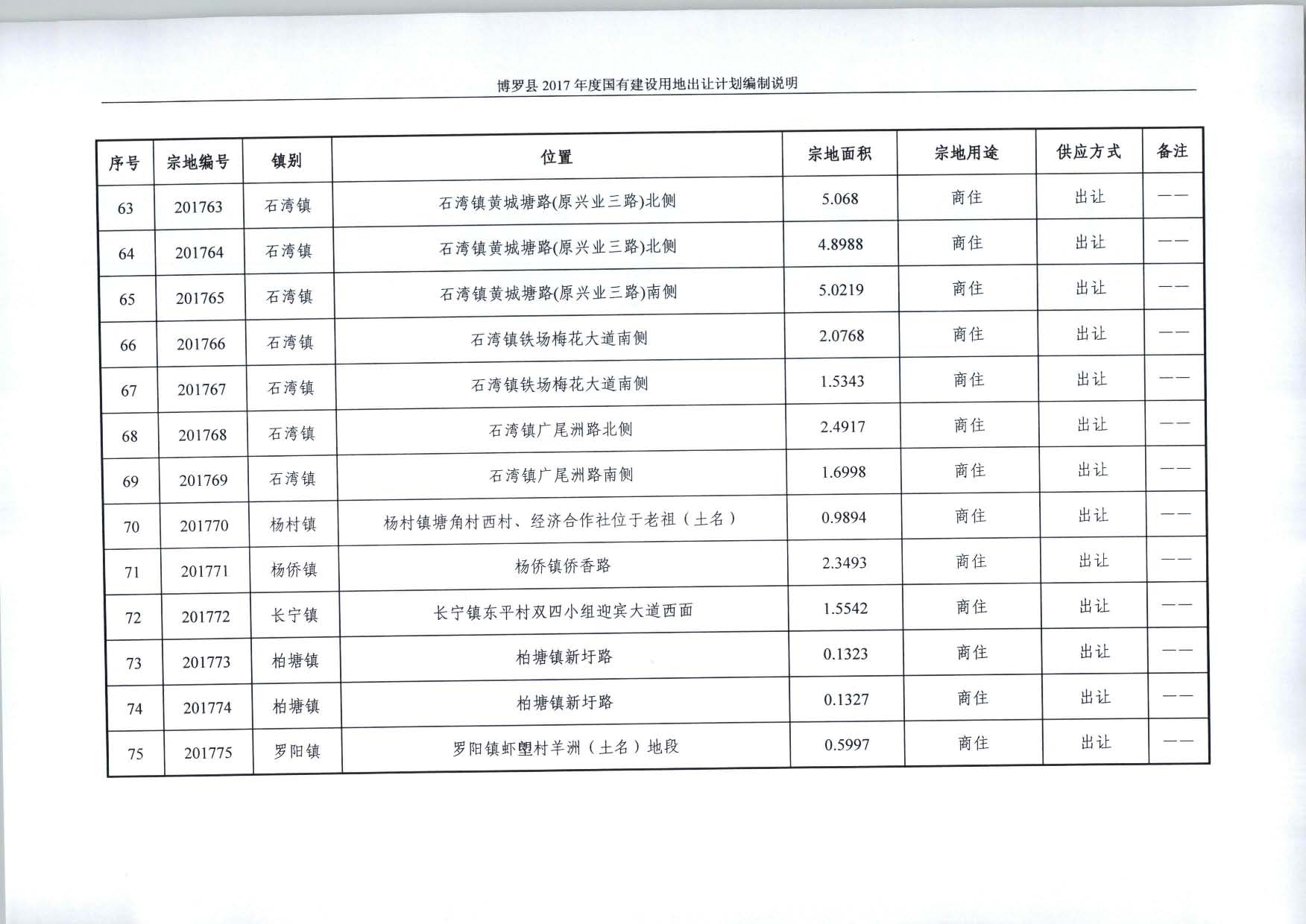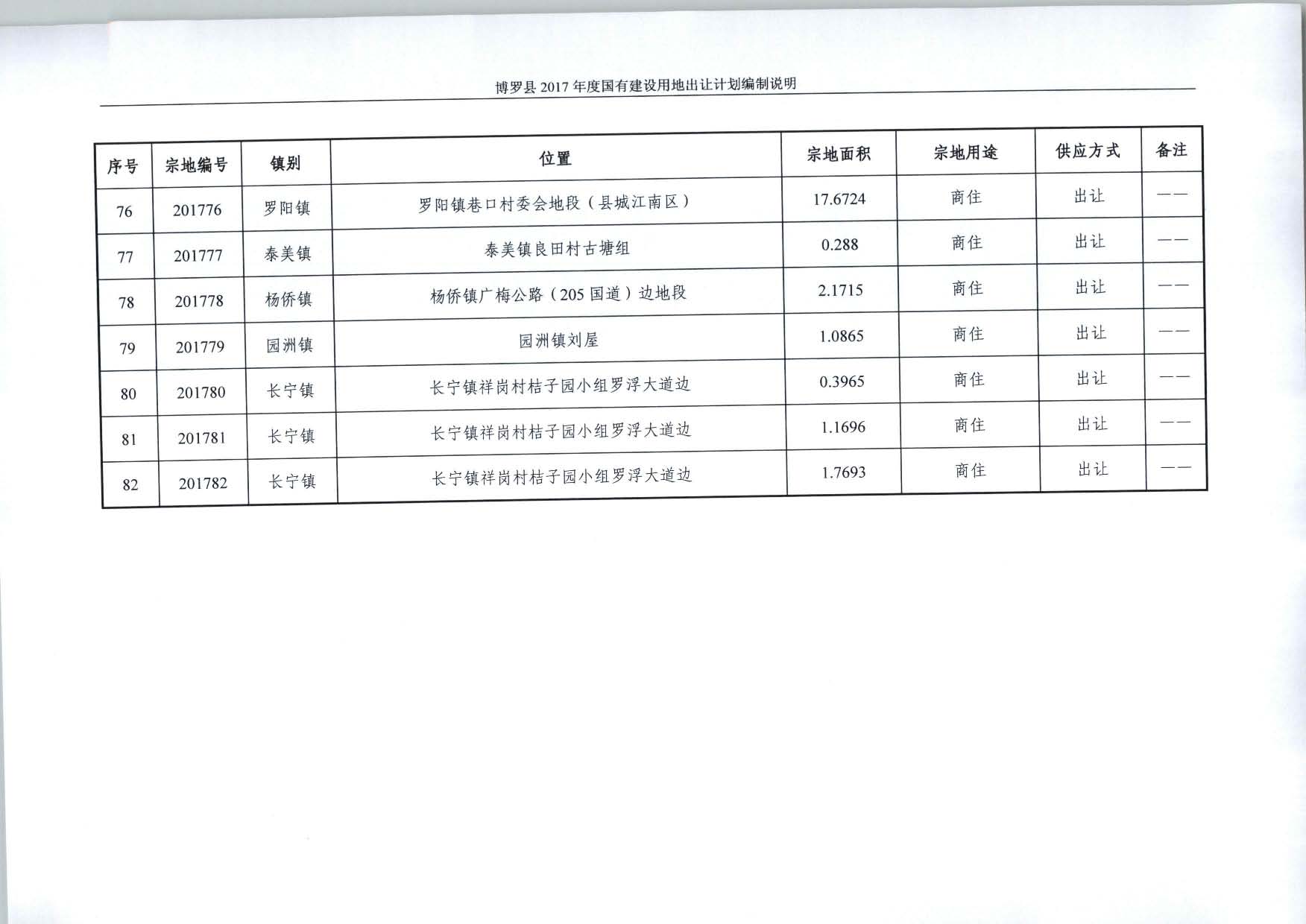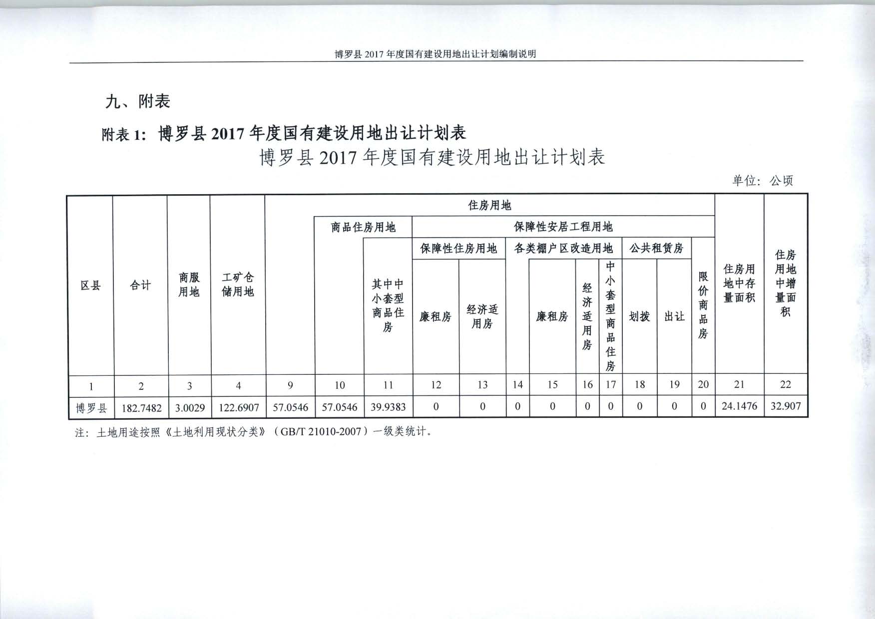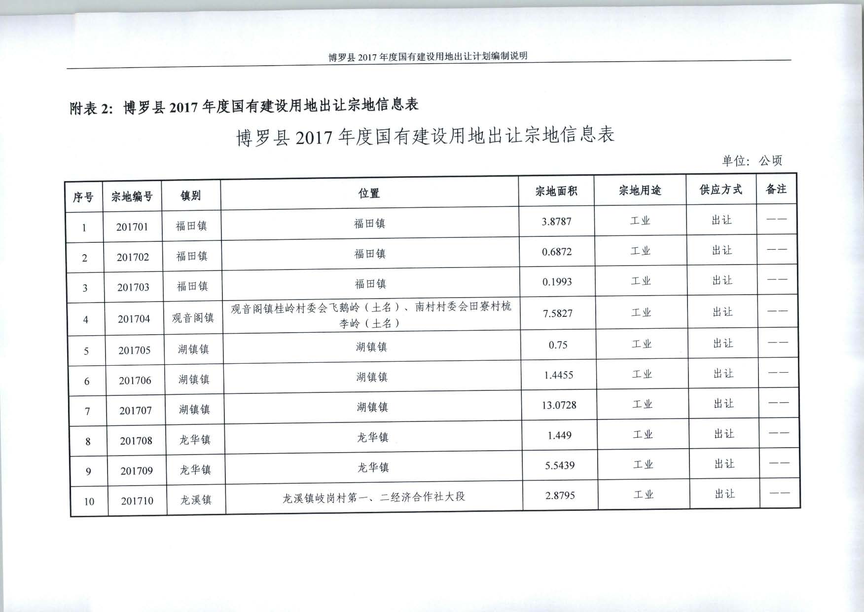 博羅縣2017年度國有建設用地使用權出讓計劃