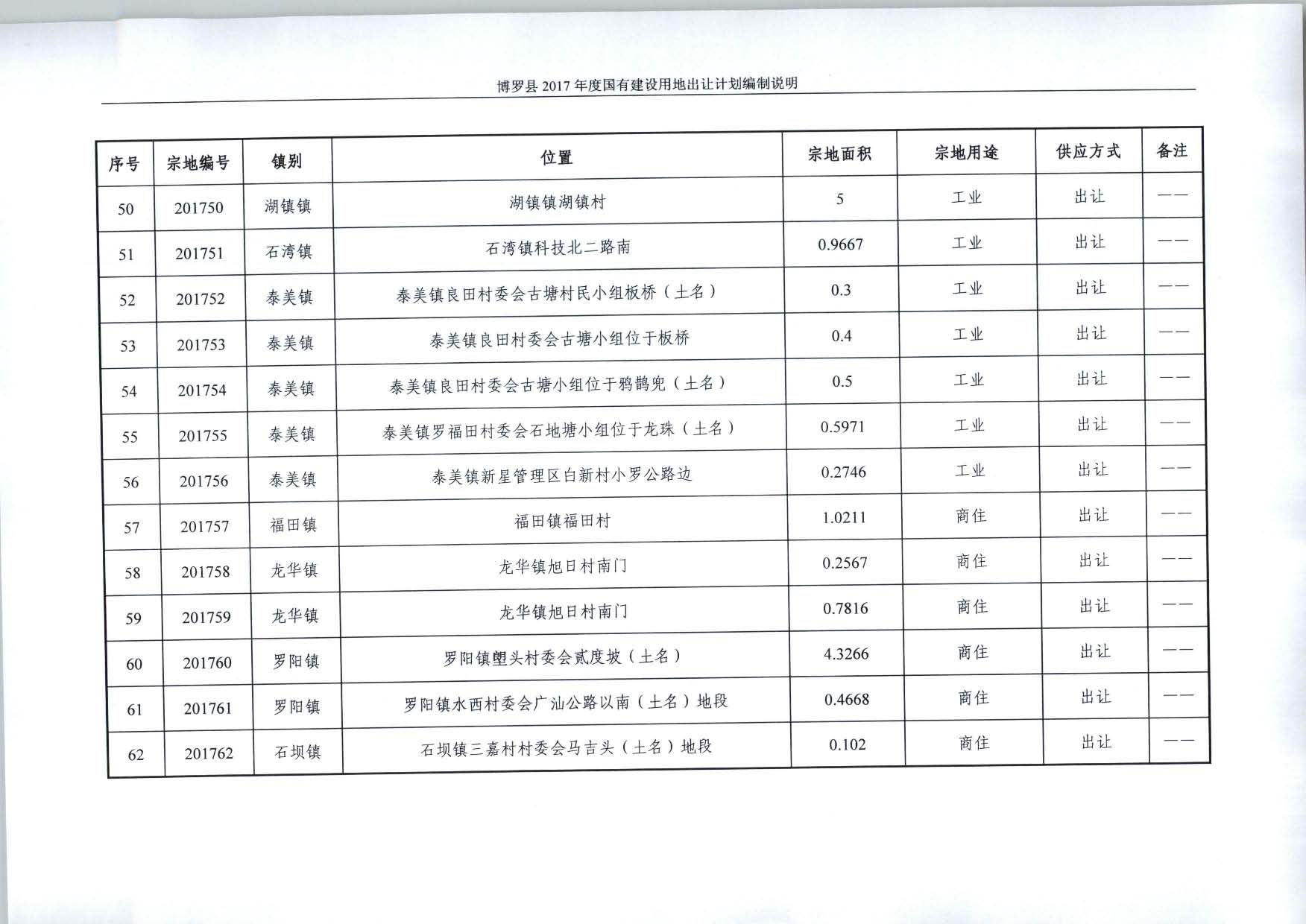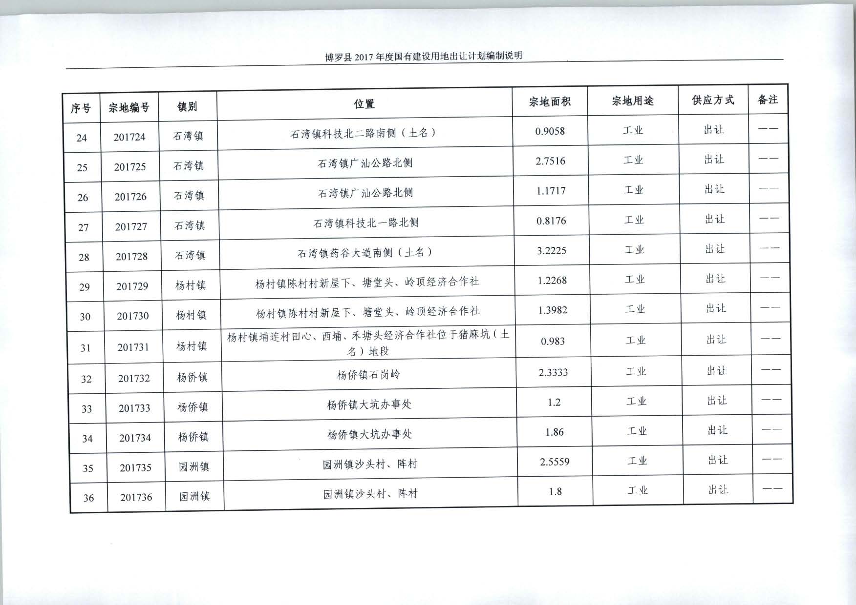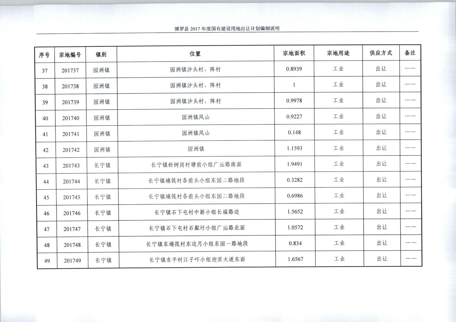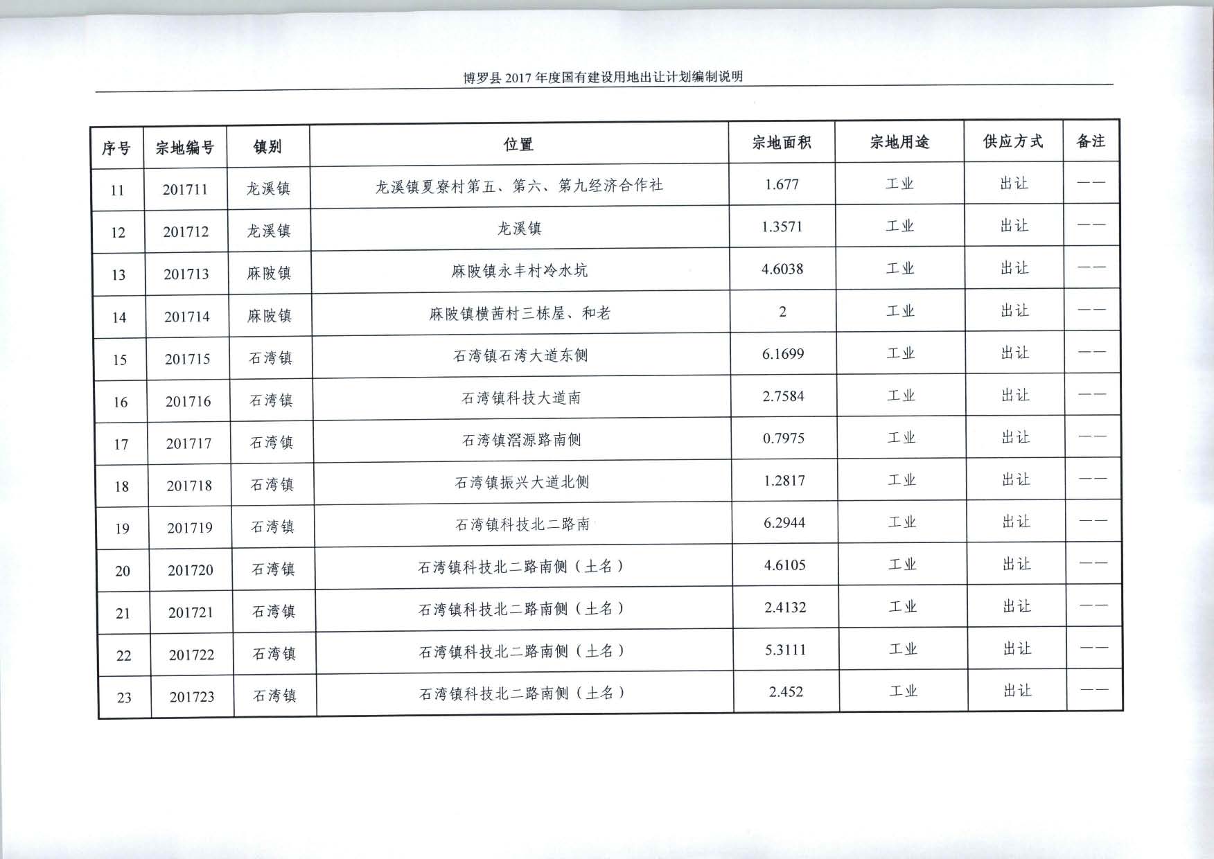博羅縣2017年度國有建設用地使用權出讓計劃
