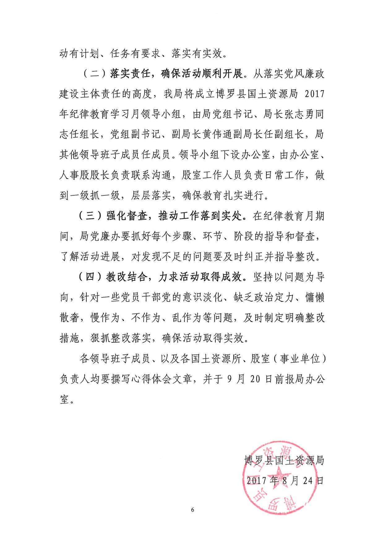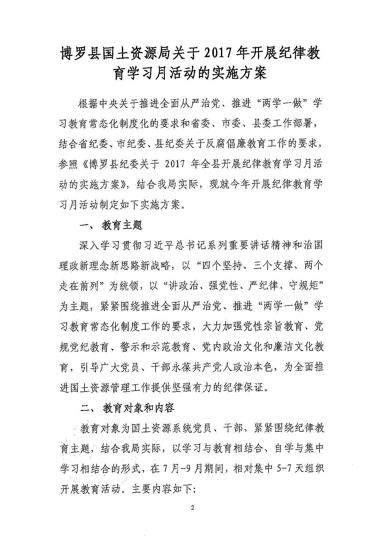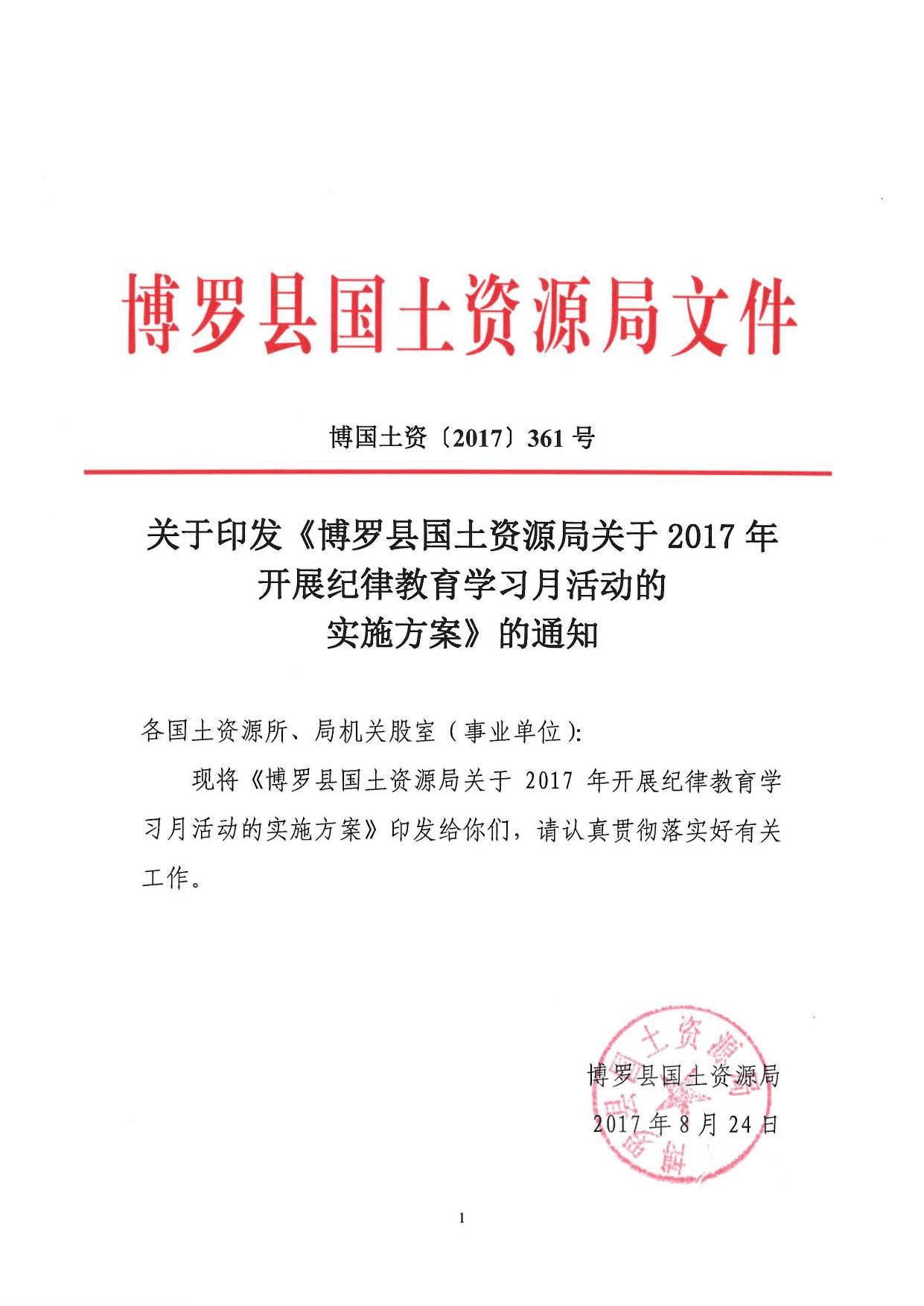 博羅縣國土資源局關于2017年開展紀律教育學習月活動的實施方案