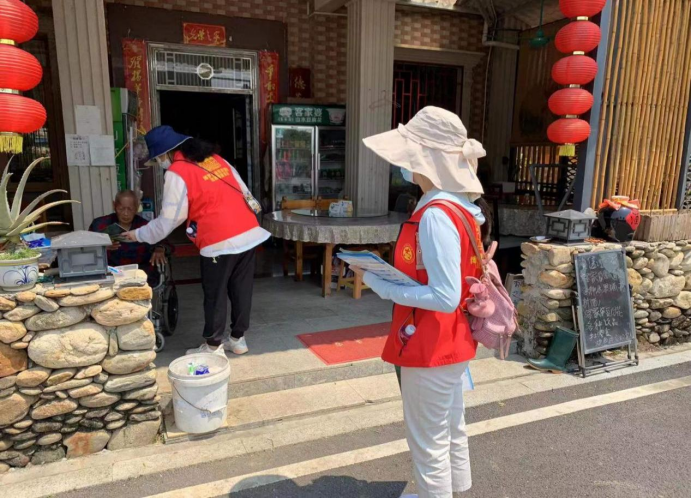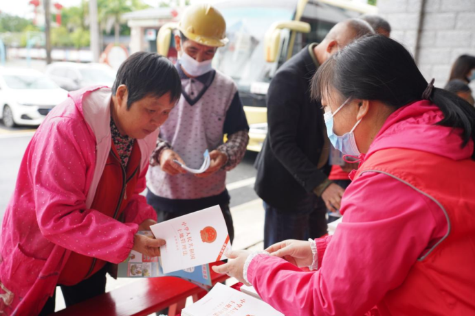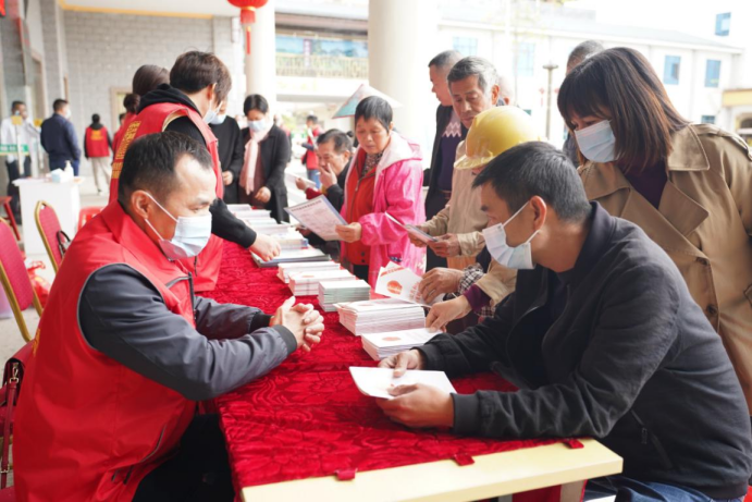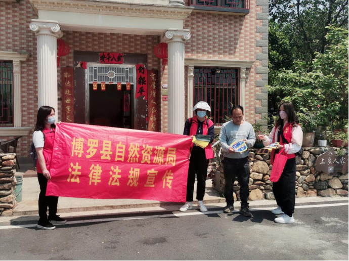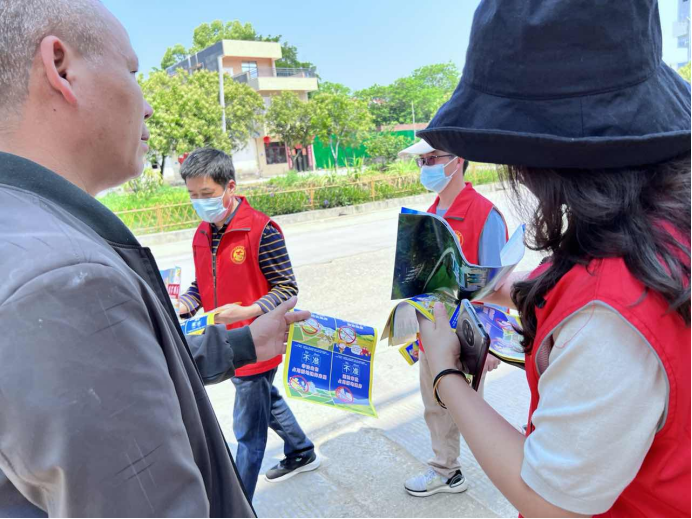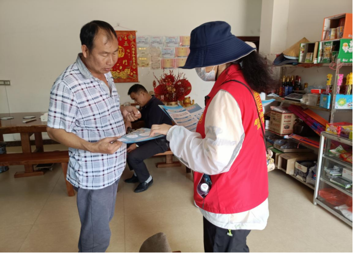 參與活動(dòng)的黨員向群眾宣傳自然資源系統(tǒng)的法律法規(guī)并派發(fā)宣傳資料