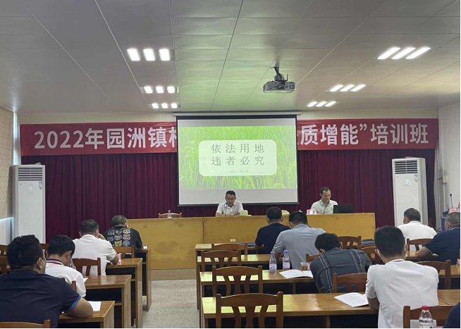 2022年9月5日下午,應縣委黨校邀請,縣自然資源局信訪與法規股股長羅志軍同志為園洲鎮政府、縣委黨校聯合舉辦的2022年園洲鎮村民小組長提質增能培訓班做“依法用地 違法必究”專題輔導講座。
