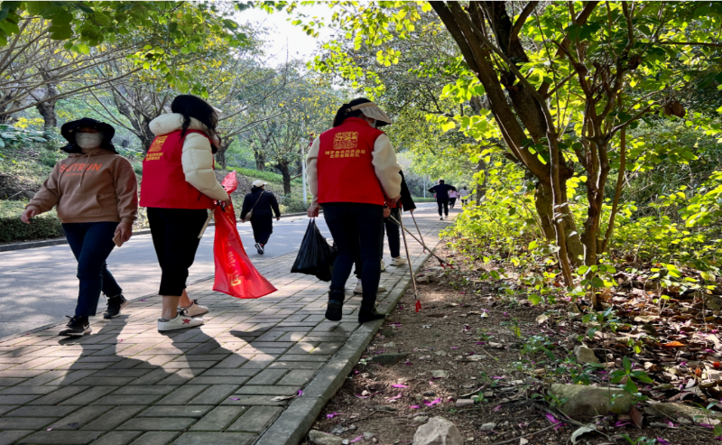 志愿者們手持鉗子、提著垃圾袋等裝備,眼觀六路,見“圾”行事,將沿途路面、草地里的廢紙屑、煙頭、塑料瓶等垃圾“收入囊中”,為此次活動添加了一抹耀眼的“志愿紅”。