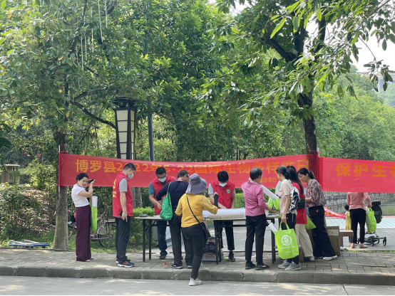 活動當天,縣林業局志愿者通過懸掛宣傳標語,發放《廣東省野生動物保護管理條例》書籍 、《廣東省分布國家重點保護陸生野生脊椎動物》 掛圖、《廣東省分布國家重點保護陸生野生脊椎動物 》折頁宣傳冊及環保購物袋等,向公眾普及生物多樣性知識,擴大公眾對生物多樣性保護的知曉度和參與度,提高社會各界關心自然保護區,關注野生動植物保護的意識。大量市民紛紛駐足觀看,領取宣傳資料,了解宣傳活動內容。本次活動共計發放宣傳資料500余份,吸引參加群眾100余人次。