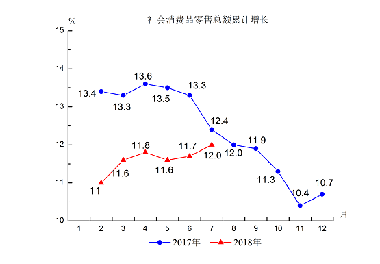 3.社會消費品零售總額119.28億元,增長12%,增幅比去年同期回落0.4個百分點。