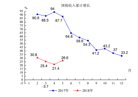 5.國稅收入24.07億元,增長26.6%,增幅比去年同期回落61.1個百分點。