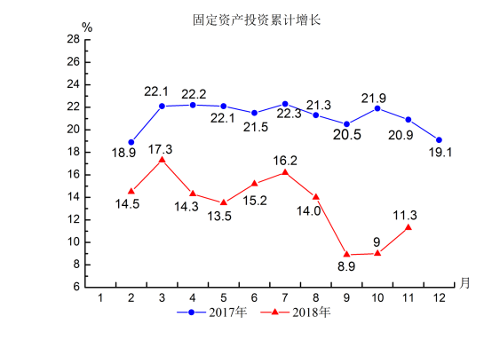 2.固定資產投資額增長11.3%,增幅比去年同期回落9.6個百分點。