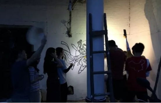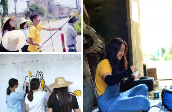 從8.5-8.20正式完工,經歷了15天,這些天里,我們經歷了各種各樣的天氣、遇到了很多困難,有時候前一天剛畫好的粉筆草稿,還沒來得及上色,夜里一場大雨就把墻壁沖刷糊了,也有過天黑了還不肯走,小伙伴們打著手機的光一起照著的,有過臺風天,天天下雨,掐著指頭盼著雨停,有過艷陽天,雖然曬的皮膚成了古銅色,但是心想還好可以開工,最開心就是陰天啦!可惜這樣的日子太少啦……有汗水、辛苦、也有歡笑,重要的是,我們在一起,完成了這件有意義的事情,過去的一切都成了美好的回憶,能通過自己的雙手一起努力把家鄉改造的越來越美麗,成就感滿滿。
