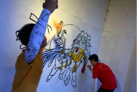 此處本來是一個廢棄的舊祠堂,我們經過村委同意后,開始對這里進行整治。考慮到祠堂的傳統氛圍,所以我們決定在這里畫麒麟。