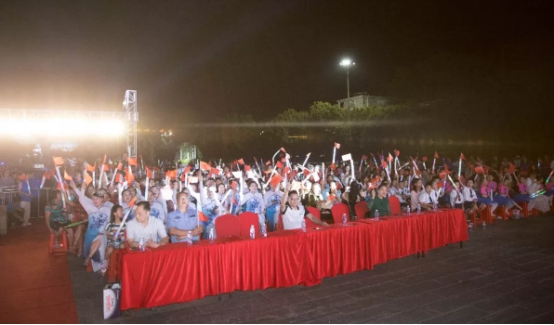 一個(gè)個(gè)精彩的節(jié)目不斷把晚會(huì)推向高潮。觀(guān)眾們的掌聲此起彼伏,揮舞著鮮艷的五星紅旗。