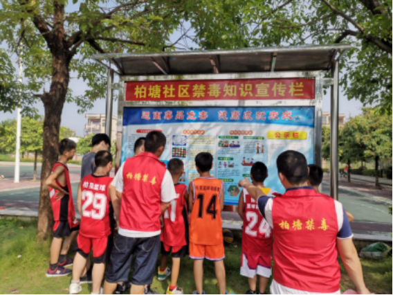 為繼續增強全民的禁毒意識,以青少年群體為重點宣傳對象,預防轄區青少年暑假期間沾染毒品,同時繼續鞏固促進社區開展針對青少年的禁毒宣傳活動,8月底柏塘社區干部帶領轄區青少年在柏塘廣場周邊開展了一場以增強青少年抵御毒品侵襲能力的宣傳活動。