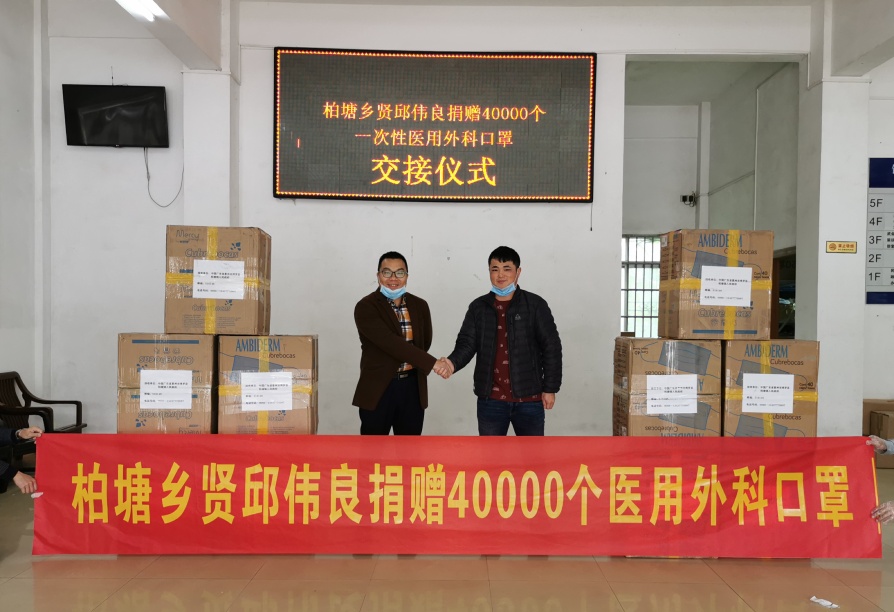 2月2日下午,40000個口罩到達柏塘鎮人民政府。這是遠在墨西哥的柏塘外出鄉賢,水陂村學布小組邱偉良得知家鄉醫用設備緊缺,其想方設法,幾經波折,終于購買了40000個一次性醫用外科口罩,無償贈送給柏塘鎮奮斗在一線的工作人員。
