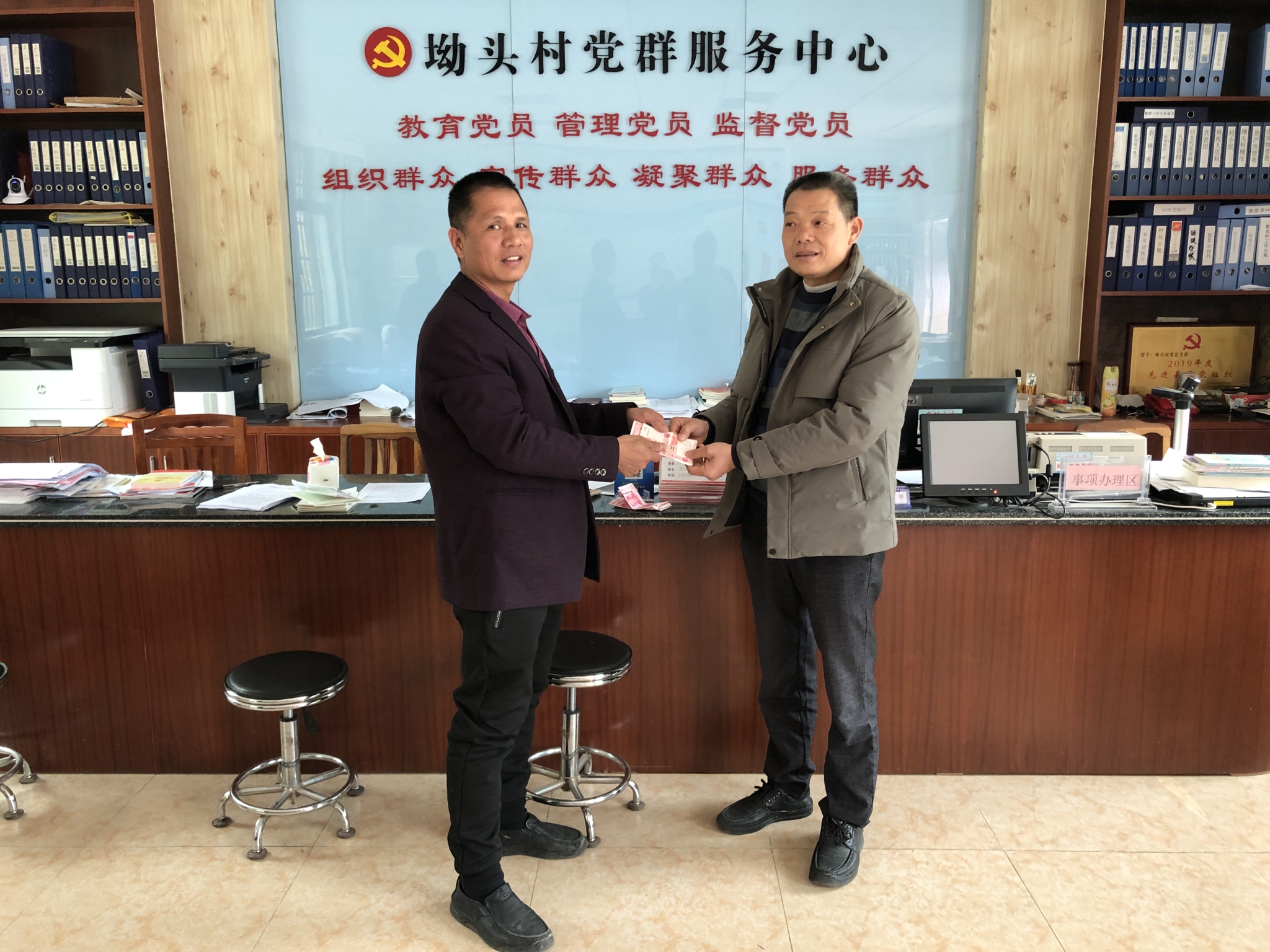 這時,坳頭村一批黨員鄉賢也挺身而出,坳頭村黨員余水新主動捐款2000元、盧平生主動捐款1000元、盧杰主動捐款1000元,樓三小組村民彭天送主動捐款1000元,用于全村消殺;坳頭村黨員余健翔捐贈200個一次性醫用口罩等等,為村內抗疫情一線“后勤”獻出一份愛心,展現創業成功人士的責任擔當和主動奉獻的情懷,為打贏疫情防控戰貢獻出一份力。