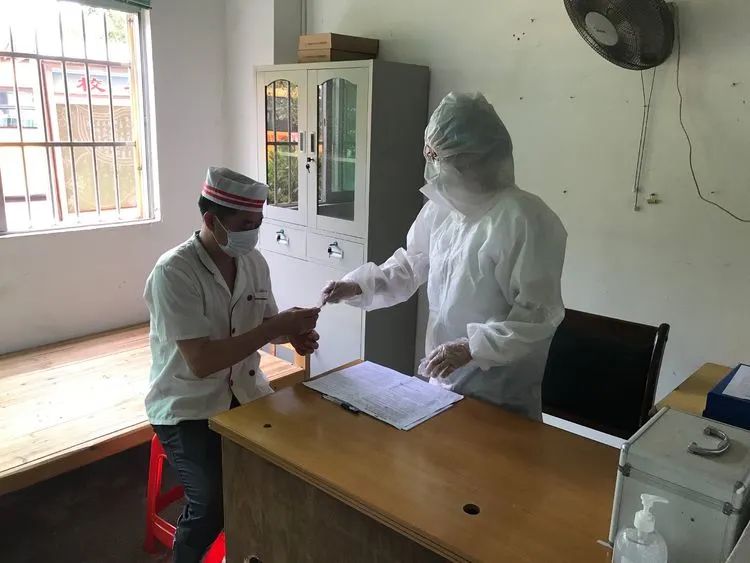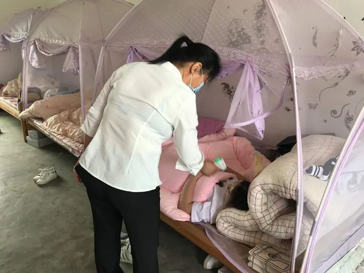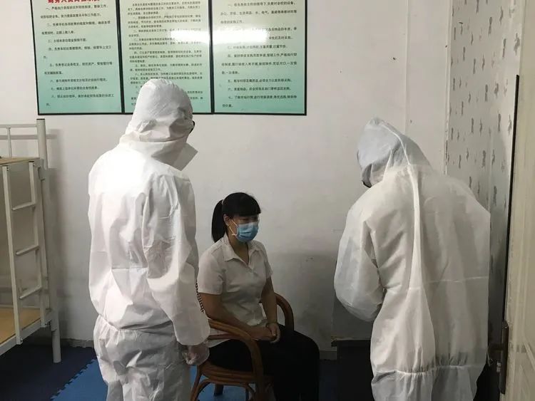 3、邱校醫用體溫計測量朱師傅的體溫,發現朱師傅體溫偏高,經過詢問發現朱師傅沒有重點疫區旅居史并做好登記。邱校醫立即將朱師傅帶到臨時觀察室。