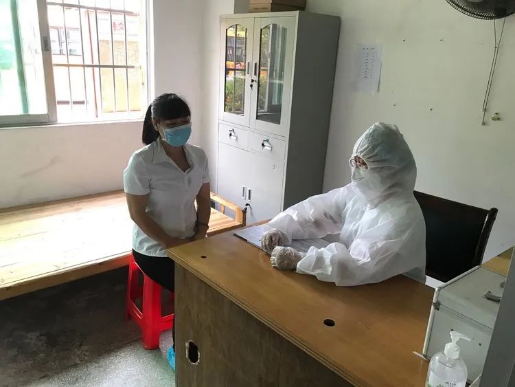 6、班主任陳老師到達隔離室,并向校醫了解學生情況。