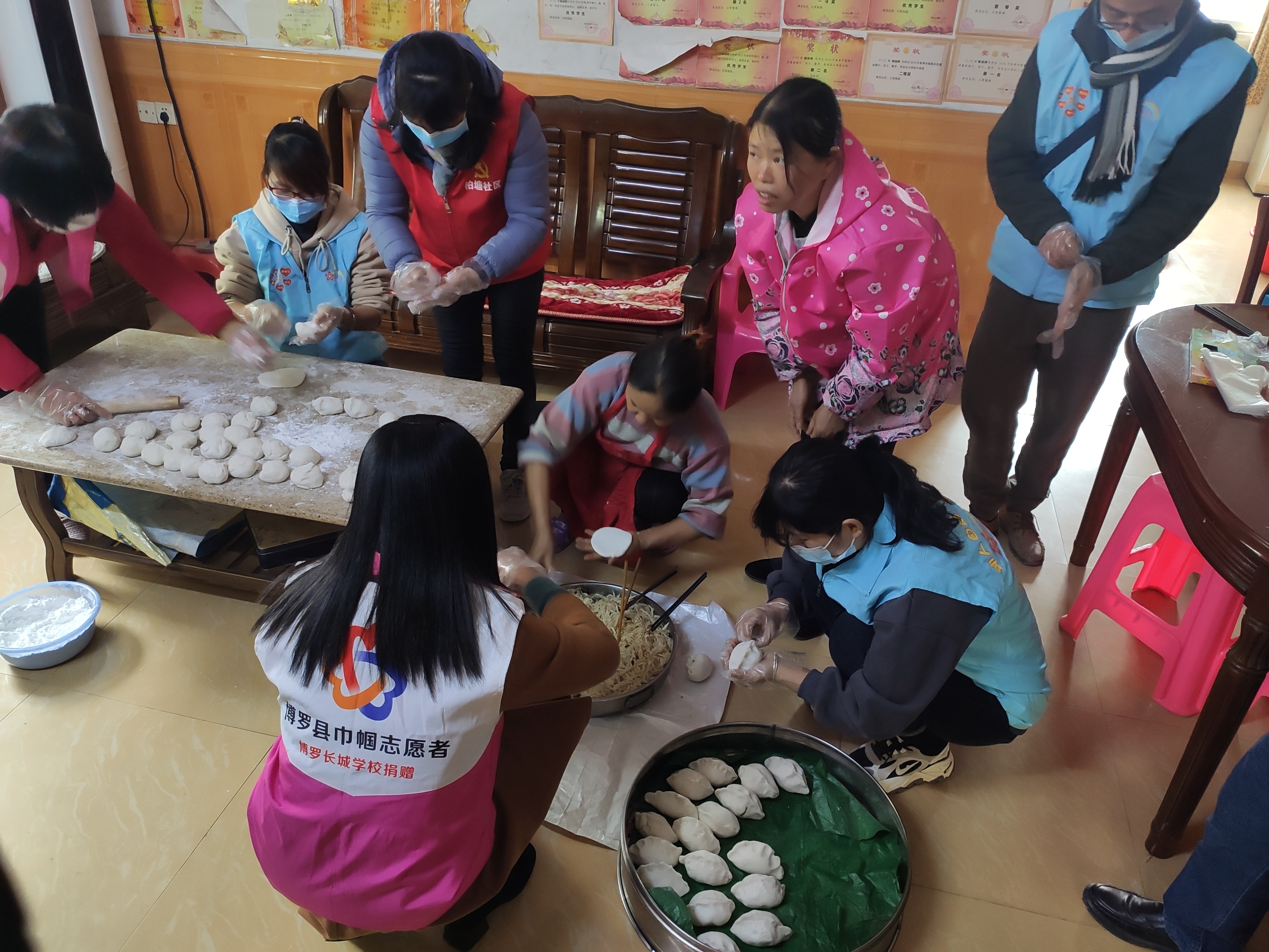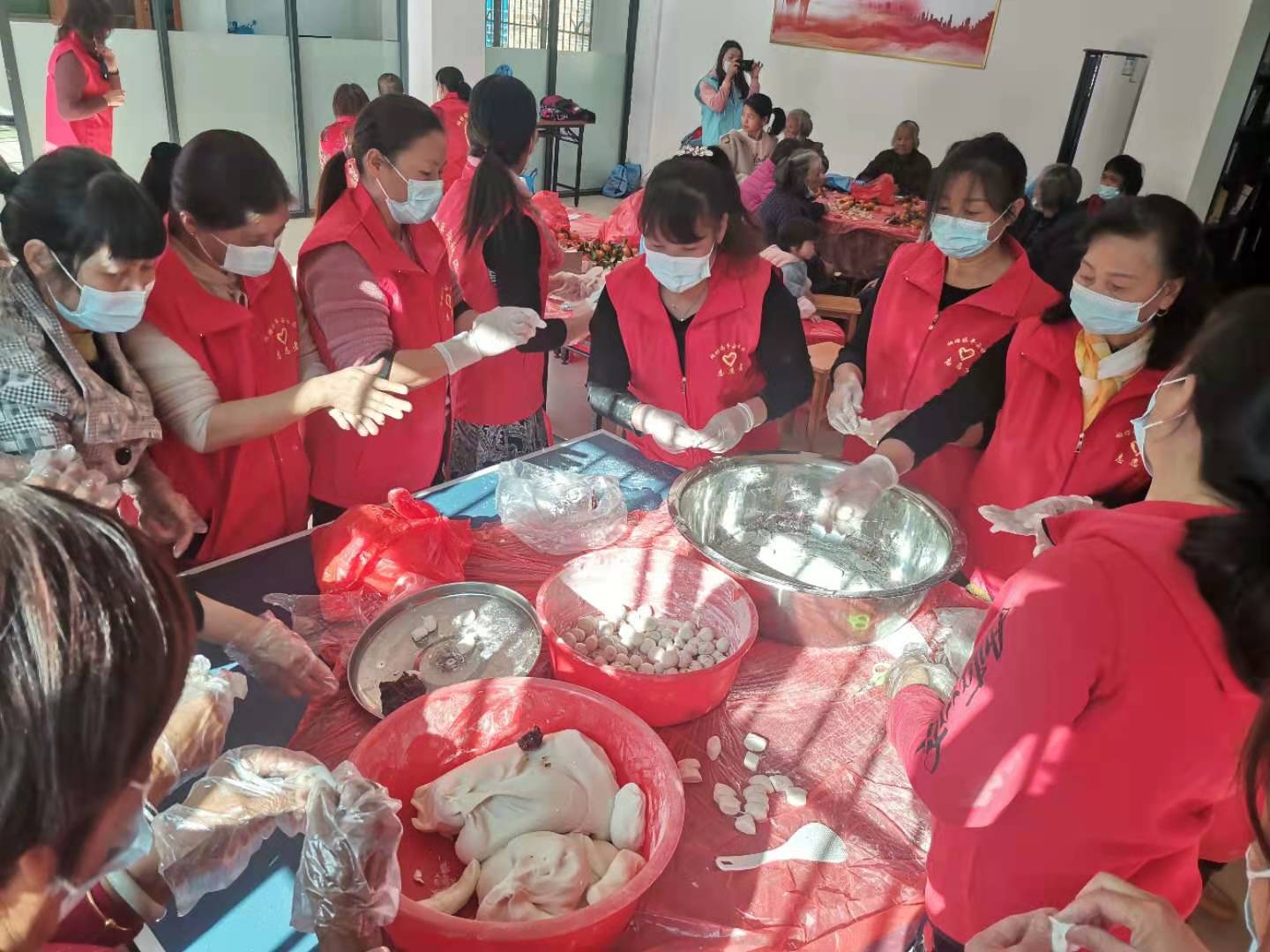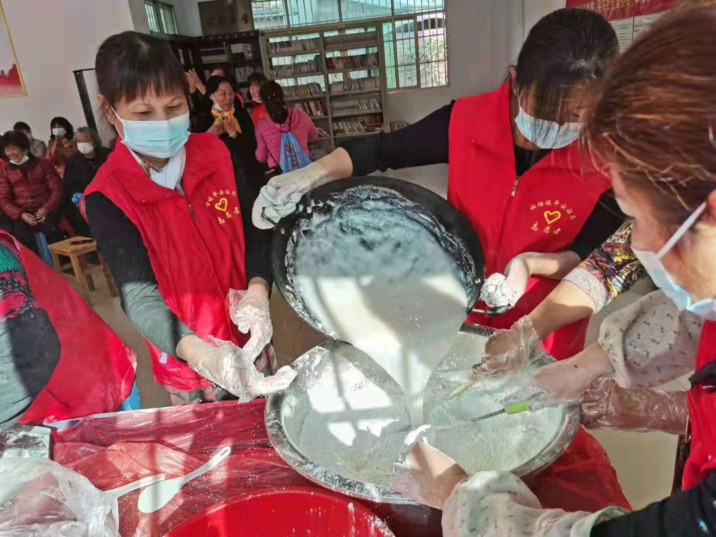 志愿者們一大早便來制作具有柏塘特色的“蘿卜粄”,整個制作過程歡聲笑語,大家齊心合力,分工明確,削蘿卜絲、炒肉餡、和面、包蘿卜粄、蒸蘿卜粄,井然有序,齊樂融融。