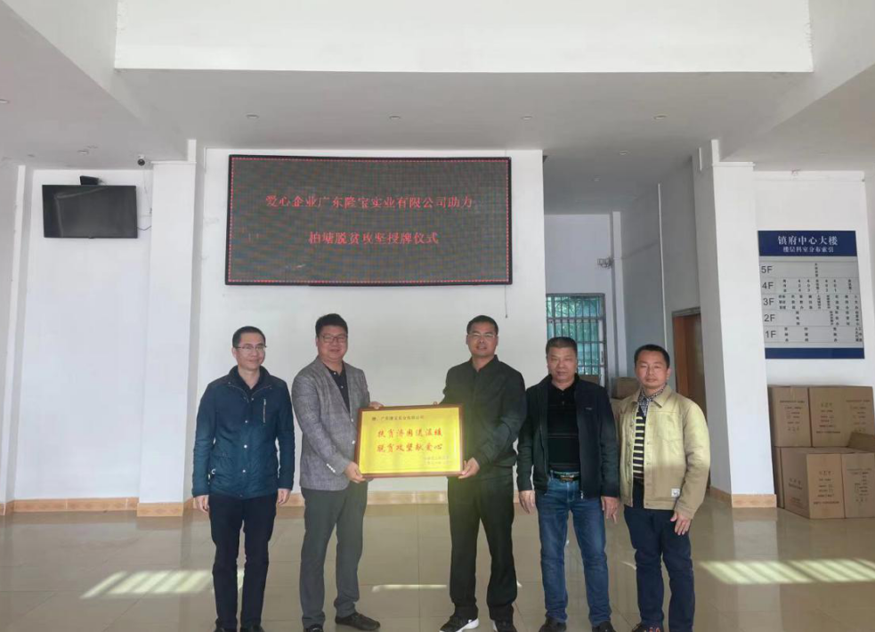 慰問結束后,鎮黨委副書記王玉書代表鎮黨委、鎮政府授予廣東隆寶實業有限公司助力柏塘鎮脫貧攻堅牌匾,肯定了愛心企業對柏塘扶貧工作的支持。