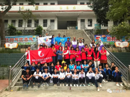 團鎮委副書記藍偉彬介紹柏塘各志愿服務團體的基本情況和公益事跡,并高度肯定了柏塘各公益團體熱心奉獻社會的義舉行為。為感謝各公益團體的無私奉獻,柏塘中學的學生代表們現場為志愿者們獻唱了《感恩的心》,并在黑板上寫下了祈禱國家昌盛以及感謝公益人士的星語心愿。