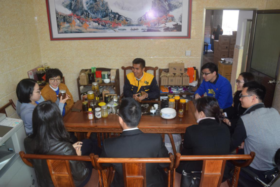 第二站,調研組來到柏塘豐養蜂專業合作社,詳細了解蜜蜂的種類、生長周期和習性,聽取了80后青年陳海塘改造傳統蜂箱并申報技術專利的創業經歷,并試嘗了各種蜂蜜飲品。