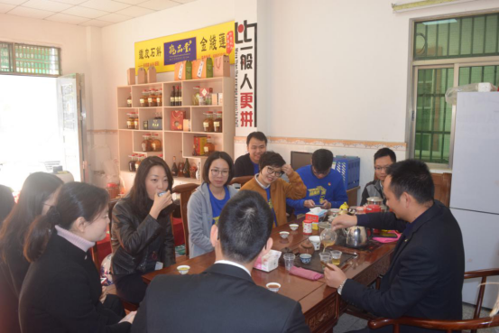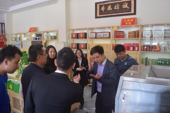 最后一站,調研組來到福波生態茶葉合作社,聽青年創業家楊鋒波介紹龍頭一號山茶的制作過程,并參觀了山茶體驗中心的各類展銷品。
