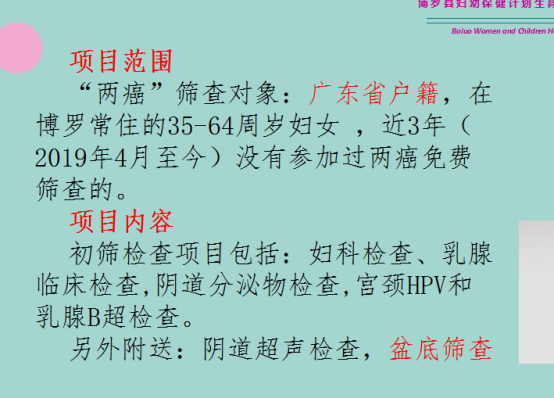 為了更好地關愛女性健康,推動轄區婦女“兩癌”篩查工作順利進行。5月17日下午,博羅縣婦幼保健院副院長古遠東一行到柏塘鎮開展城鄉婦女免費“兩癌”篩查工作動員大會及“兩癌”預防知識講座,鎮婦聯工作人員和各村(社區)婦聯主席參加了會議。