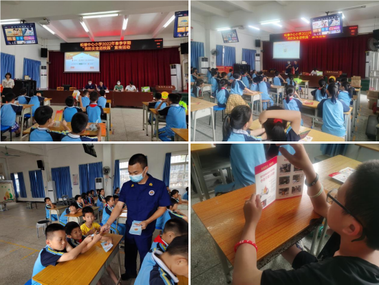 社會治安治理事務部黃副部長和消防隊肖副隊長在鎮轄區內校園進行“安全宣傳月活動”教育培訓