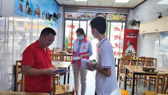 工作人員給三小場所、商鋪、居民家里派發安全宣傳單及講解安全生產知識