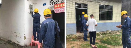 組織供電所到低陂村為2戶低保戶檢測安裝用電設施