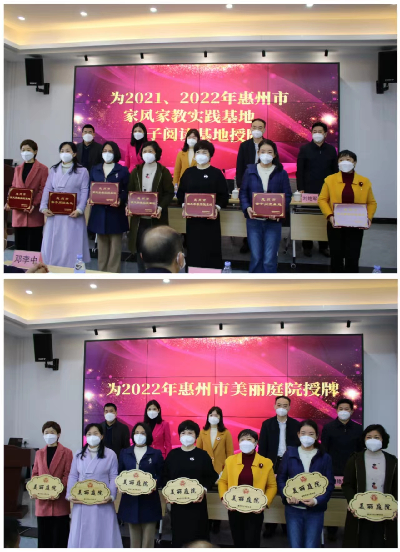 2021年、2022年惠州市家風(fēng)家教實(shí)踐基地、親子閱讀基地和2022年市級(jí)美麗庭院示范戶授牌儀式