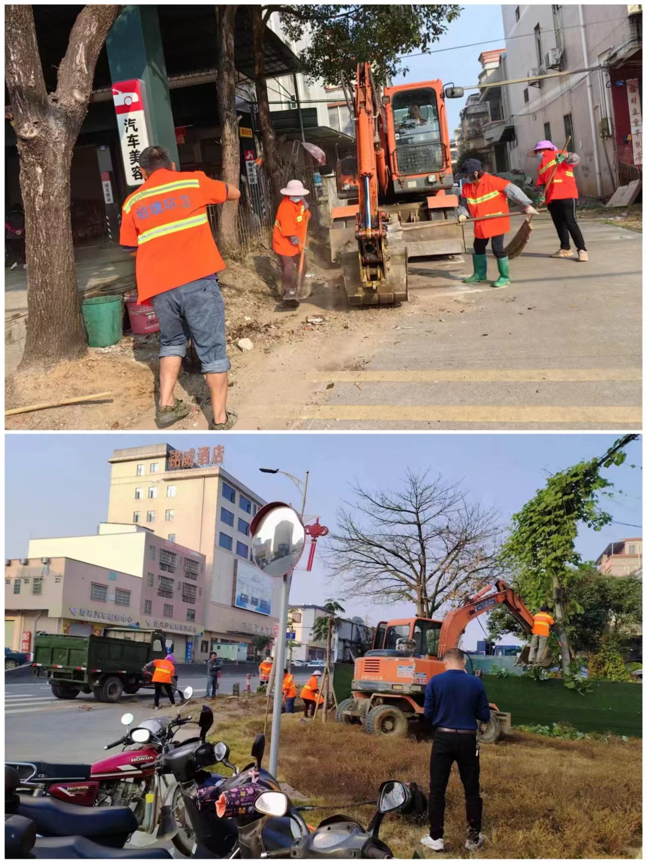 為營造節(jié)日期間良好的人居環(huán)境,環(huán)衛(wèi)站組織清潔員、環(huán)衛(wèi)車輛、挖掘機等對廣梅公路沿線兩邊的環(huán)境衛(wèi)生進行深度整治,特別是對建筑垃圾、雜草、衛(wèi)生死角和門口亂堆亂放進行清理。