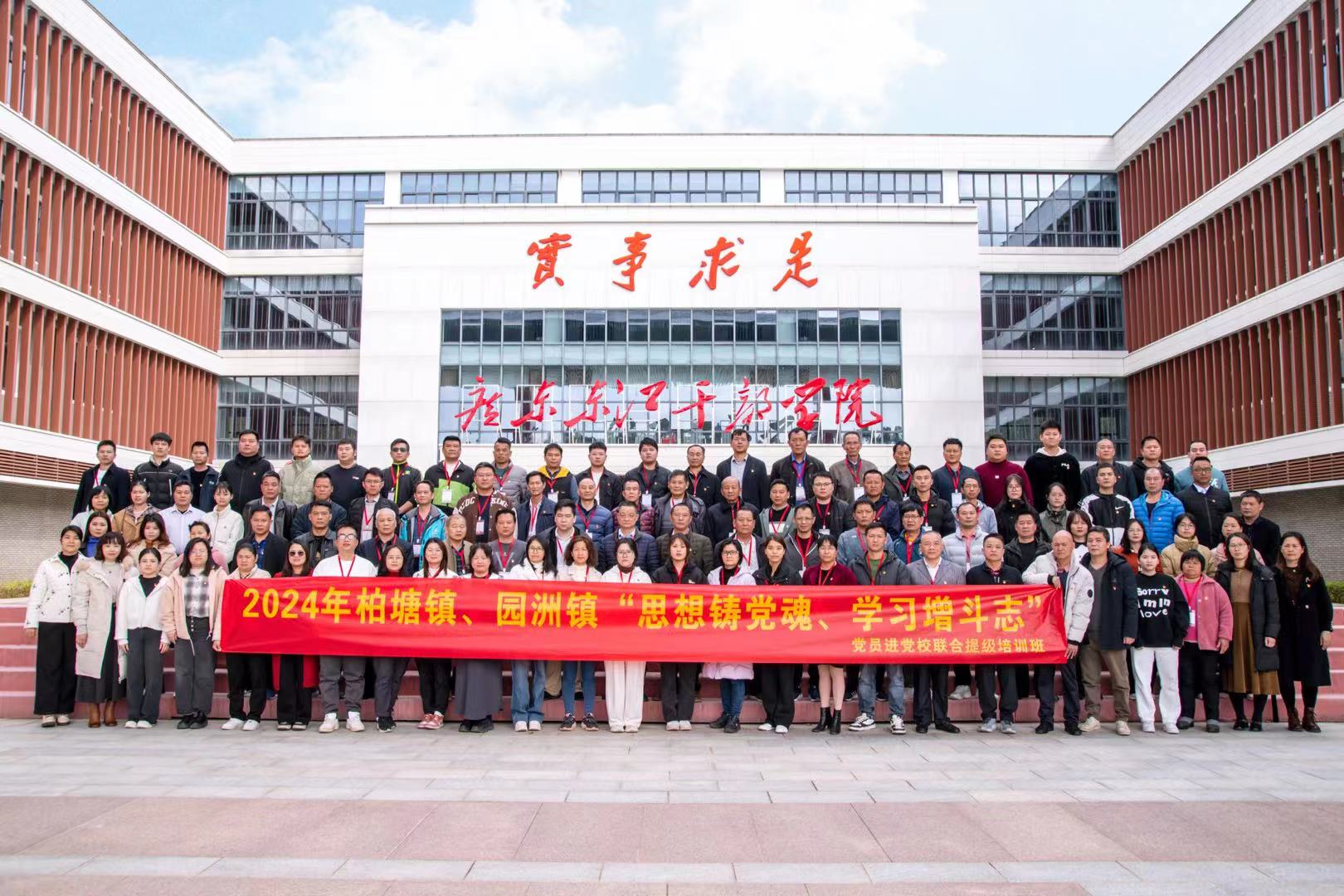 為引導廣大黨員自覺做黨創新理論的篤信篤行者,推動黨性修養內化于心、外化于行,推動“百縣千鎮萬村高質量發展工程”落地落實落細。根據“思想鑄黨魂、學習增斗志”黨員進黨校三年培訓工作部署,2024年2月28日至3月1日,柏塘鎮聯合園洲鎮在廣東東江干部學院舉辦“思想鑄黨魂、學習增斗志”黨員進黨校暨普通黨員聯合提級培訓班,來自兩個鎮的近100名黨員參加本次培訓,共同接受紅色教育洗禮。