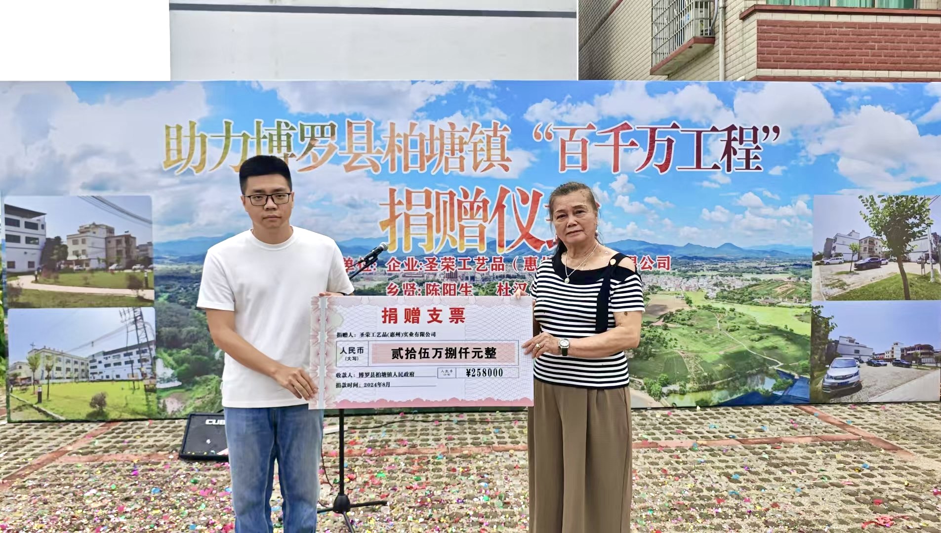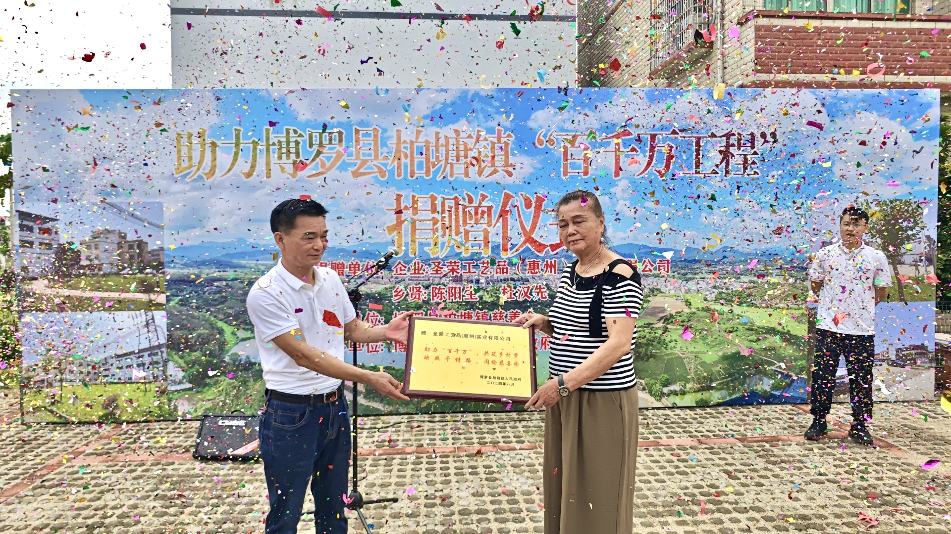 李瑞強(qiáng)代表鎮(zhèn)黨委、政府對圣榮工藝品(惠州)實(shí)業(yè)有限公司和鄉(xiāng)賢陳陽生先生、杜漢先先生以實(shí)際行動(dòng)助力“百千萬工程”表示衷心的感謝。他表示,圣榮工藝品(惠州)實(shí)業(yè)有限公司作為扎根柏塘發(fā)展的本土企業(yè),主動(dòng)融入“百千萬工程”建設(shè)浪潮,此次捐資25.8萬元用于我鎮(zhèn)基礎(chǔ)設(shè)施建設(shè)和慈善事業(yè)中,充分彰顯了企業(yè)的責(zé)任擔(dān)當(dāng)。同時(shí),感謝鄉(xiāng)賢陳陽生先生、杜漢先先生捐贈(zèng)兩塊土地,獻(xiàn)地興邦,惠澤鄉(xiāng)里,情系萬千家。這兩處項(xiàng)目的建成,有效改善了我鎮(zhèn)人居環(huán)境,提升居民的生活品質(zhì)和幸福指數(shù)。