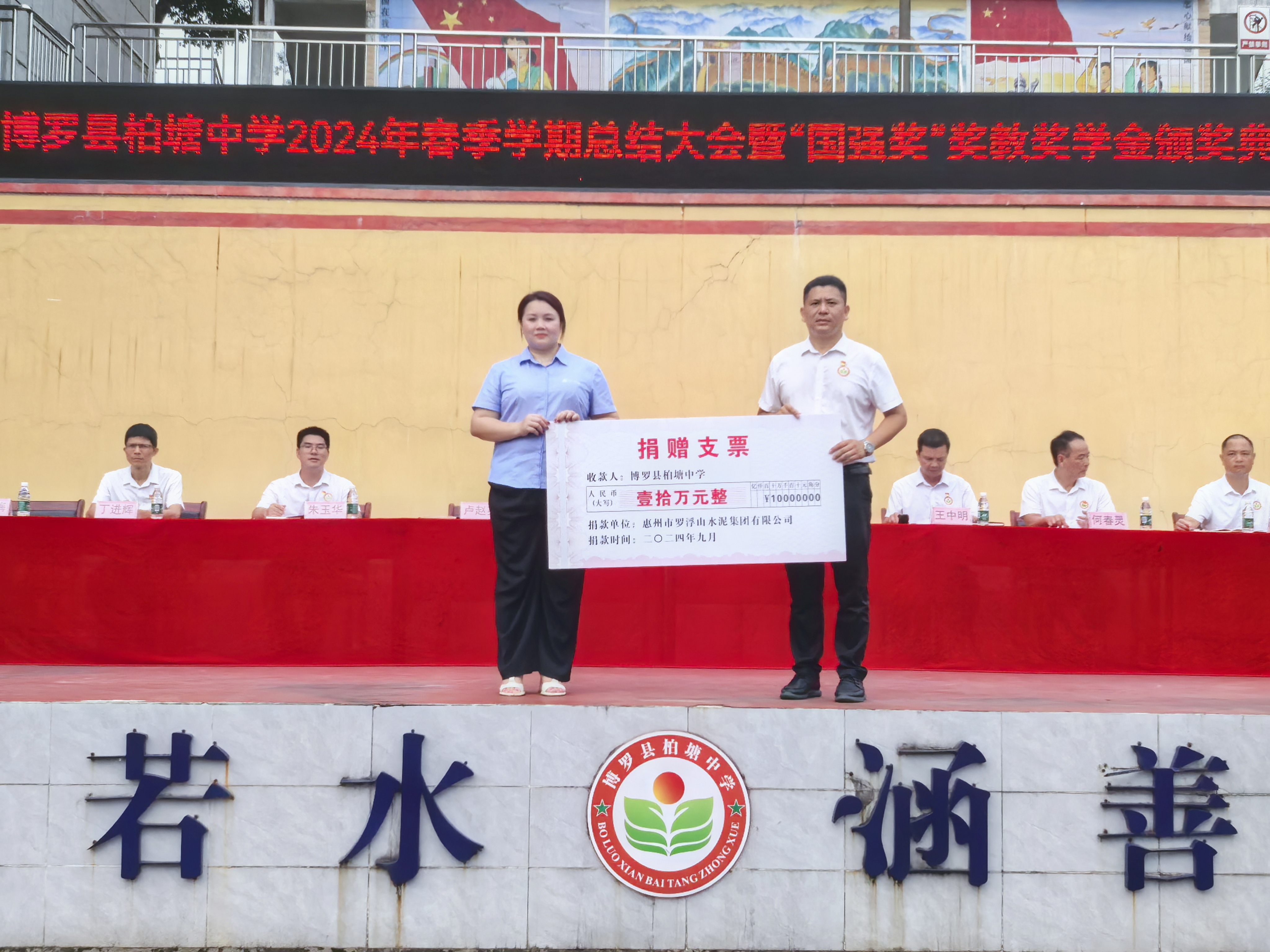 9月13日,柏塘鎮(zhèn)柏塘中學(xué)、柏塘中心小學(xué)分別開(kāi)展2024年國(guó)強(qiáng)獎(jiǎng)學(xué)獎(jiǎng)教表彰大會(huì),柏塘鎮(zhèn)副鎮(zhèn)長(zhǎng)葉惠瓊、羅浮山水泥集團(tuán)行政副總裁李麗華及兩校師生代表參加表彰活動(dòng)。