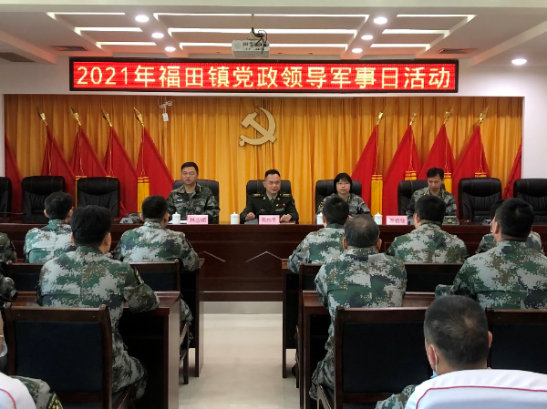 為更好地推動軍地融合發展,進一步錘煉干部隊伍過硬作風,2021年11月11日上午,福田鎮組織領導班子成員、18個村(社區)書記和村(社區)民兵營長統一身著迷彩服,在縣國防教育訓練基地開展“軍事日”活動,一起體驗軍事生活,接受國防教育。