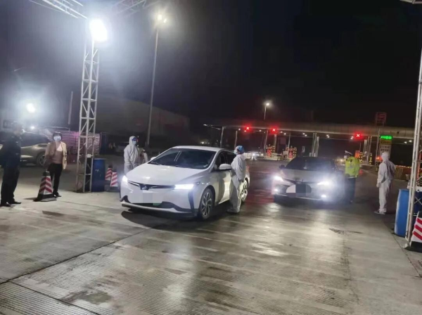 12月23日晚,福田鎮鎮委書記李曉敏到從莞高速福田出口疫情防控執勤卡點檢查。對執勤卡點值班的工作人員致以誠摯的問候,叮囑工作人員要時刻保護好自己,注意自身安全,穿好防護服、戴手套并佩戴好面罩、口罩。同時,詳細詢問了今日執勤卡點疫情防控工作的開展情況,對掃碼測溫、信息登記、帳篷、防護設施、物資的配置情況等進行了現場查看,并給予了充分肯定。現場的工作人員工作認真負責,對每輛車的司乘人員都進行逐一測溫、查驗健康碼、行程碼,對于來自中高風險地區的司乘人員需要提供48小時核酸檢測報告,反復詢問登記,確認沒有異常后,才會放車輛通行。截止12月23日晚上十時,從莞高速福田出口疫情防控執勤卡點共勸返中高風險地區來車5輛。