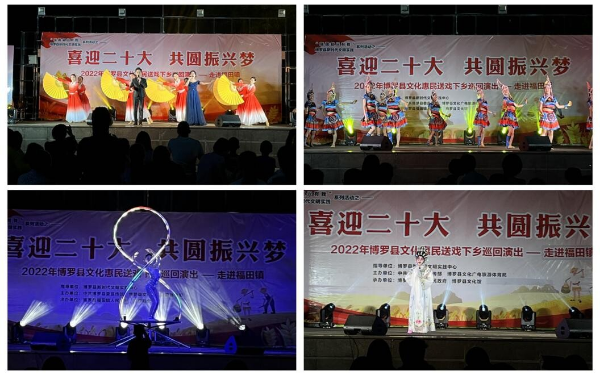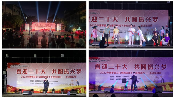 為促進文化惠民,進一步豐富農村群眾的精神文化生活,提升群眾文化生活滿意度,讓城鄉老百姓共享文化成果,8月15日晚,由博羅縣新時代文明實踐中心為指導,中共博羅縣委宣傳部、博羅縣文化廣電旅游體育局主辦,福田鎮人民政府、博羅縣文化館協辦的“喜迎二十大 共圓振興夢”博羅縣文化惠民送戲下鄉巡回演出走進福田鎮。