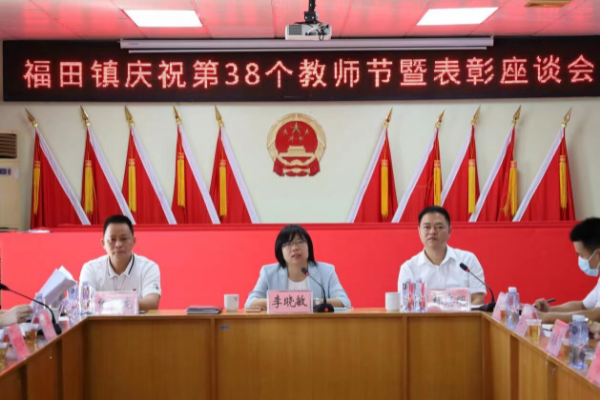 2022年9月9日上午,福田鎮(zhèn)召開慶祝第38個教師節(jié)暨表彰座談會。黨委書記李曉敏,黨委副書記、鎮(zhèn)長林志明,鎮(zhèn)三套班子部分成員,各村(社區(qū))書記,福田中心小學、福田中學校長,熱心教育事業(yè)先進單位、教育工作先進單位、優(yōu)秀班主任、優(yōu)秀教師、優(yōu)秀學生代表等參加了座談會。會議由黨委副書記、鎮(zhèn)長林志明主持。