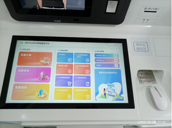 “惠州市遠(yuǎn)程智能柜臺(tái)”自助設(shè)備相當(dāng)于一個(gè)智能化的辦事窗口,通過遠(yuǎn)程交互、人工智能調(diào)度等功能,讓市民不用跑縣辦事大廳排隊(duì)即可就近辦理一些必須經(jīng)過人工審批的事項(xiàng),實(shí)現(xiàn)“簡(jiǎn)事即辦”。