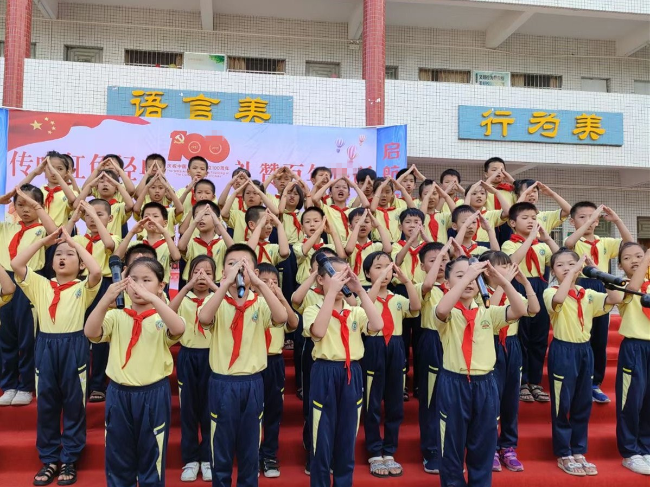 為慶祝中國共產黨建黨100周年,深化未成年思想道德建設,引導少年兒童愛黨、愛國、愛社會主義的情感,5月28日上午,觀音閣中心小學組織開展“童心向黨”歌詠活動。活動中,同學們熱情滿滿,用激情嘹亮的歌聲抒發對黨、對祖國的熱愛,用青春的激情和昂揚的歌聲為祖國獻上自己的祝福。本次活動旨在激發同學們對黨對國家的熱愛之情,引導青少年樹立遠大的志向,心系祖國,努力學習,感黨恩,跟黨走,做新時代合格少年。