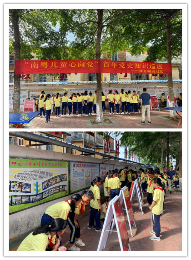 為貫徹落實習近平總書記關于“注重家庭、注重家教、注重家風”的重要指示精神以及關于兒童工作的重要論述,深化未成年人思想道德建設,加強社會主義核心價值觀宣傳教育,近日,觀音閣鎮婦聯在觀音閣鎮中小學校開展“南粵兒童心向黨”百年黨史知識巡展活動。
