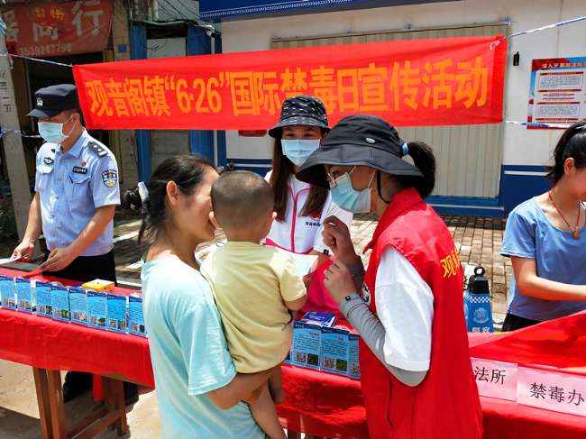 為營造全民參與禁毒的良好氛圍,積極推進禁毒宣傳縱深發展,6月26日上午,觀音閣鎮禁毒辦聯合鎮婦聯、派出所、司法所等部門集中開展觀音閣鎮“6.26”國際禁毒日宣傳活動。