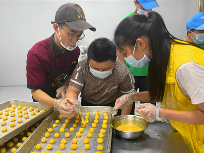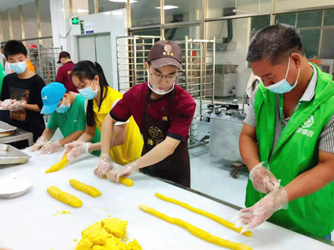 活動中,非遺傳承人李超宏向大家分享了德源樓的由來,并介紹月餅制作工序的原理,感受百年傳承的技藝。為了能讓大家有更好的體驗,非遺傳承人李曉聰帶領(lǐng)大家學(xué)習(xí)制作傳統(tǒng)小吃核桃酥。經(jīng)過講解示范后,會員們親自動手操作,體驗親手制作的樂趣。