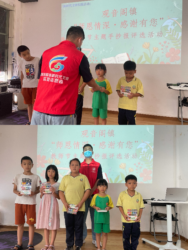 活動期間,孩子們發揮自己想象力和動手能力,將自己對老師的真情實感表露于教師節主題手抄報上,一幅幅色彩豐富的作品中表達著對老師真摯的感恩之情,也傳遞對老師深情的節日祝福。最后,志愿者為評選出優秀作品的孩子們,頒發精美的獎品和獎狀。