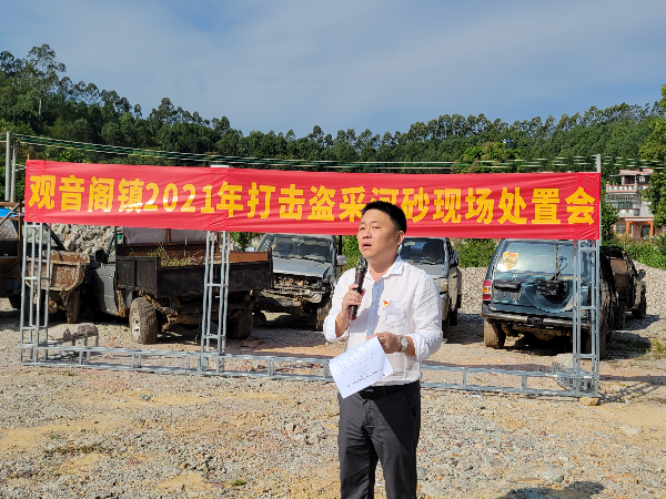 為進一步推進打擊非法盜采河砂專項整治行動,堅決遏制盜采河砂現(xiàn)象,10月27日上午,觀音閣鎮(zhèn)召開打擊盜采河砂現(xiàn)場處置會,縣水利局副局長李攀、縣水利局執(zhí)法大隊,鎮(zhèn)三套班子成員,各村(社區(qū))書記、主任,全體包村干部,以及綜合行政執(zhí)法辦、農(nóng)林水綜合服務中心、派出所成員等100余人參加。