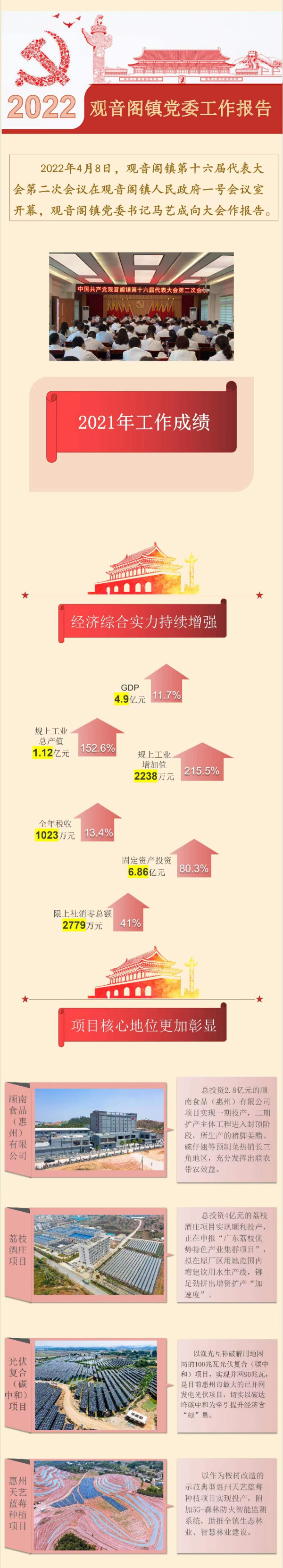 會議研究部署2022年工作。觀音閣鎮將繼續高舉習近平新時代中國特色社會主義思想偉大旗幟,深入貫徹習近平總書記對廣東系列重要講話和重要指示批示精神,在縣委、縣政府的堅強領導下,團結帶領全鎮廣大黨員干部群眾,踔厲奮發、篤行不怠,埋頭苦干、勇毅前行,奮力開創觀音閣美麗幸福高質量發展新局面,為加快建設縣強、民富、景美、人和的現代魅力博羅作出新的更大貢獻,以昂揚姿態和優異成績迎接黨的二十大勝利召開!
