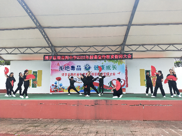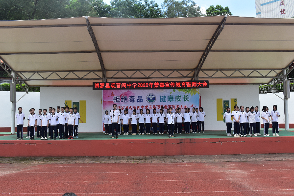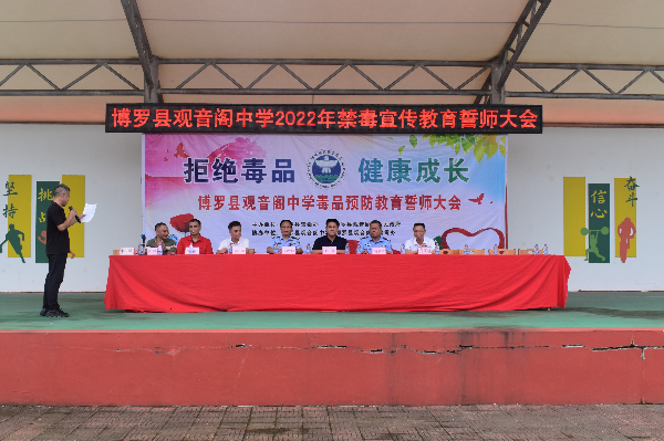 為進一步加強青少年毒品預防教育工作,促進青少年身心健康發展,增強拒毒、防毒意識,6月22日上午,觀音閣鎮在觀音閣中學開展以“拒絕毒品,健康成長”為主題的禁毒宣誓活動。觀音閣鎮黨委副書記鐘衛紅、博羅縣禁毒辦副主任鄧仁仙,鎮禁毒辦、司法所、綜合治理辦、派出所、觀音閣社區“三社聯動”社工站及觀音閣中學全校師生等500余人參加此次活動。